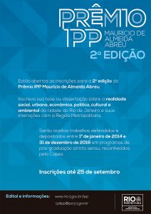 Os interessados em concorrer à 2ª edição do Prêmio IPP Maurício de Abreu, lançado pelo Instituto Pereira Passos, têm até o dia 25 de setembro para se inscrever. O Prêmio irá selecionar teses e dissertações que tenha como tema a realidade social, urbana, econômica, política, cultural ou ambiental do município e suas interações com a Região Metropolitana.
