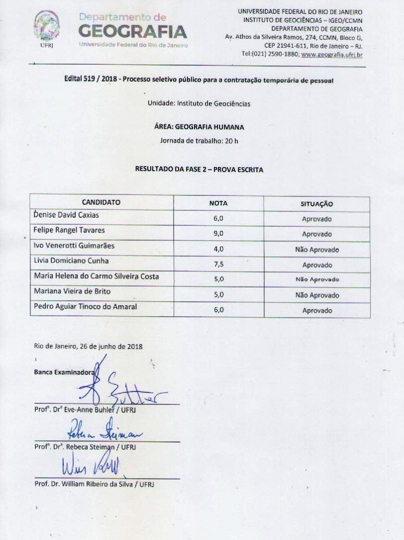 Para o Departamento de Geografia foi aberta 1 (uma) vaga de professor substituto, para a área de Geografia Humana, com jornada de trabalho de 20h.